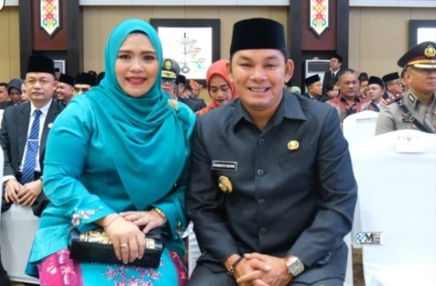 Usai dilaksanakan pelantikan, Wakil Bupati Kabupaten Murung Raya, Rahamnto Muhidin bersama istrinya wakil ketua 1 DPRD Kab. Murung Raya, Dina Maulidah, mengucapkan selamat atas pelantikan TP-PKK Kabupaten Lamandau. (asd/sb).