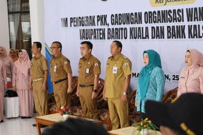MARABAHAN, onlinesinarbarito.com – Pembagian paket sembako ramadhan 1446 H / 2025 M kerjasama Tim Penggerak Pemberdayaan dan Kesejahteraan Keluarga (PKK), Gabungan Organisasi Wanita (GOW), Dharma Wanita Persatuan (DWP) Kab. Barito Kuala dan Bank Kalsel Cabang Marabahan berlangsung di halaman Aula Selidah, Selasa pagi (25/3/2025).