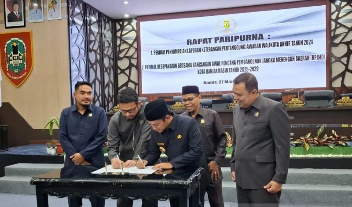 BANJARMASIN, onlinesinarbarito.com – Ketua DPRD Kota Banjarmasin, Kalimantan Selatan Rikval Fachruri menyatakan mendukung visi Wali Kota Banjarmasin H Muhammad Yamin HR dan Wakilnya Hj Ananda, yakni Banjarmasin maju sejahtera pada rancangan Rencana Pembangunan Jangka Menengah Daerah (RPJMD) 2025-2029. “Saat ini sudah kita terima dokumen rancangan awal RPJMD 2025-2029 dari pemerintah kota,” ujarnya, Senin (31/3/2025).