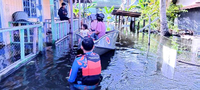 Evakuasi dilakukan di kawasan rawan banjir seperti simpang Perwira dan simpang LP, yang mengalami genangan cukup tinggi.