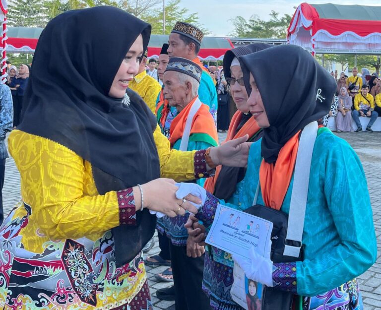 PURUK CAHU, onlinesinarbarito.com – Wakil Ketua 1 DPRD Kabupaten Murung Raya, Dina Maulidah menghadiri pelepasan, keberangkatan 63 orang Calon Jemaah Haji dari Murung Raya di halaman Masjid Al-stiqlal Puruk Cahu, Jumat (9/5/2025).