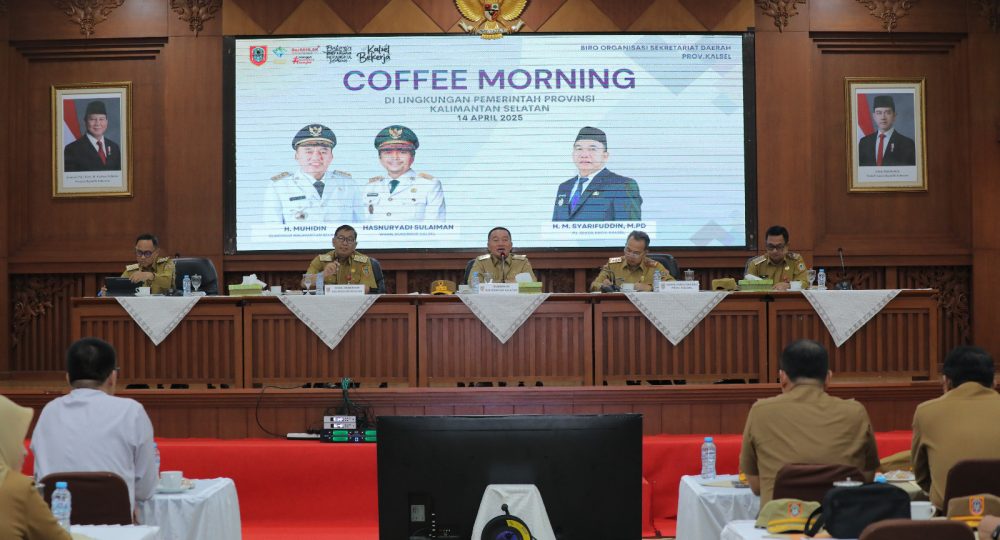 “Kalau biasanya peringatan hari jadi di Kantor Gubernur di Banjarmasin, tahun ini kita laksanakan di ibukota provinsi di Banjarbaru,” ujar Gubernur H Muhidin usai memimpin pertemuan/coffee morning di ruang Idham Khalid Sekretariat Daerah Provinsi Kalsel di Banjarbaru, Senin (14/5/2025).