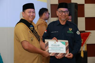 Sebagai bentuk apresiasi, Bupati menyerahkan piagam penghargaan kepada para kepala SKPD, pimpinan perusahaan, camat, serta organisasi masyarakat yang berpartisipasi sebagai orang tua asuh dalam program Genting.