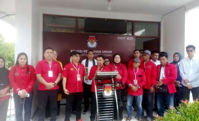 Pasangan bakal calon Bupati dan Wakil Bupati Barito Utara, Kalimantan Tengah Jimmy Carter – Inriati Karawaheni resmi mendaftar ke Komisi Pemilihan Umum (KPU) Kabupaten Barito Utara, Jumat (30/5/2025) pukul 09.00 Wib Pagi.(adv/sb).