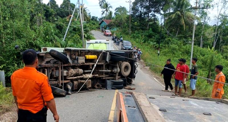 Berdasarkan informasi yang diterima, truck tersebut terbalik setelah mengalami kecelakaan tunggal, menghalangi jalur utama yang menghubungkan Muara Teweh dan Puruk Cahu.