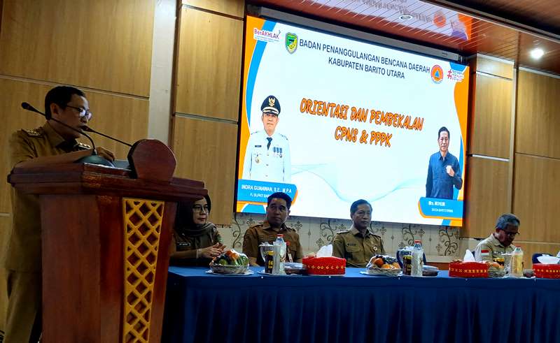 MUARA TEWEH, onlinesinarbarito.com – Penjabat (Pj) Bupati Barito Utara, Indra Gunawan, secara resmi membuka kegiatan Pembekalan dan Orientasi bagi Calon Pegawai Negeri Sipil (CPNS) dan Pegawai Pemerintah dengan Perjanjian Kerja (PPPK) di lingkup Badan Penanggulangan Bencana Daerah (BPBD) Kabupaten Barito Utara. Kegiatan ini digelar di Aula Dinas PUPR Kabupaten Barito Utara. (10/6/2025).