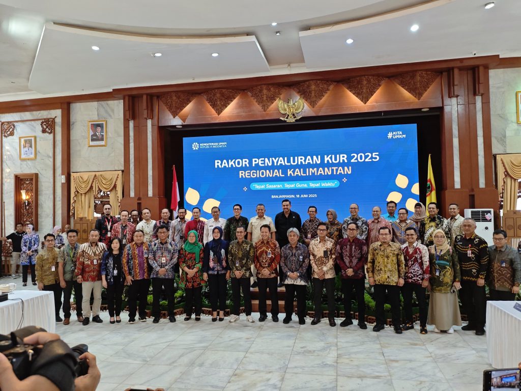 BANJARBARU, onlinesinarbarito.com – Penyaluran Kredit Usaha Rakyat (KUR) di Kalimantan Selatan (Kalsel) untuk tahun 2025 hingga pertengahan Juni tercatat telah mencapai Rp2,21 triliun, atau sekitar 38 persen dari total plafon sebesar Rp5,6 triliun. Hal tersebut disampaikan Kepala Dinas Koperasi dan UMKM Provinsi Kalimantan Selatan, Gusti Yanuar Noor Rifai, usai mengikuti Rapat Koordinasi Penyaluran KUR 2025 yang dihadiri langsung Menteri UMKM RI, Maman Abdurrahman.