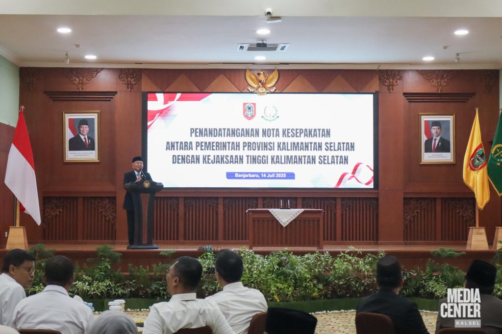 BANJARBARU, onlinesinarbarito.com – Pemerintah Provinsi Kalimantan Selatan bersama Kejaksaan Tinggi Kalimantan Selatan menandatangani Nota Kesepakatan tentang kerja sama penanganan masalah hukum di bidang perdata dan tata usaha negara (TUN). Penandatanganan berlangsung di Gedung Idham Chalid, Banjarbaru, Senin (14/7/2025).