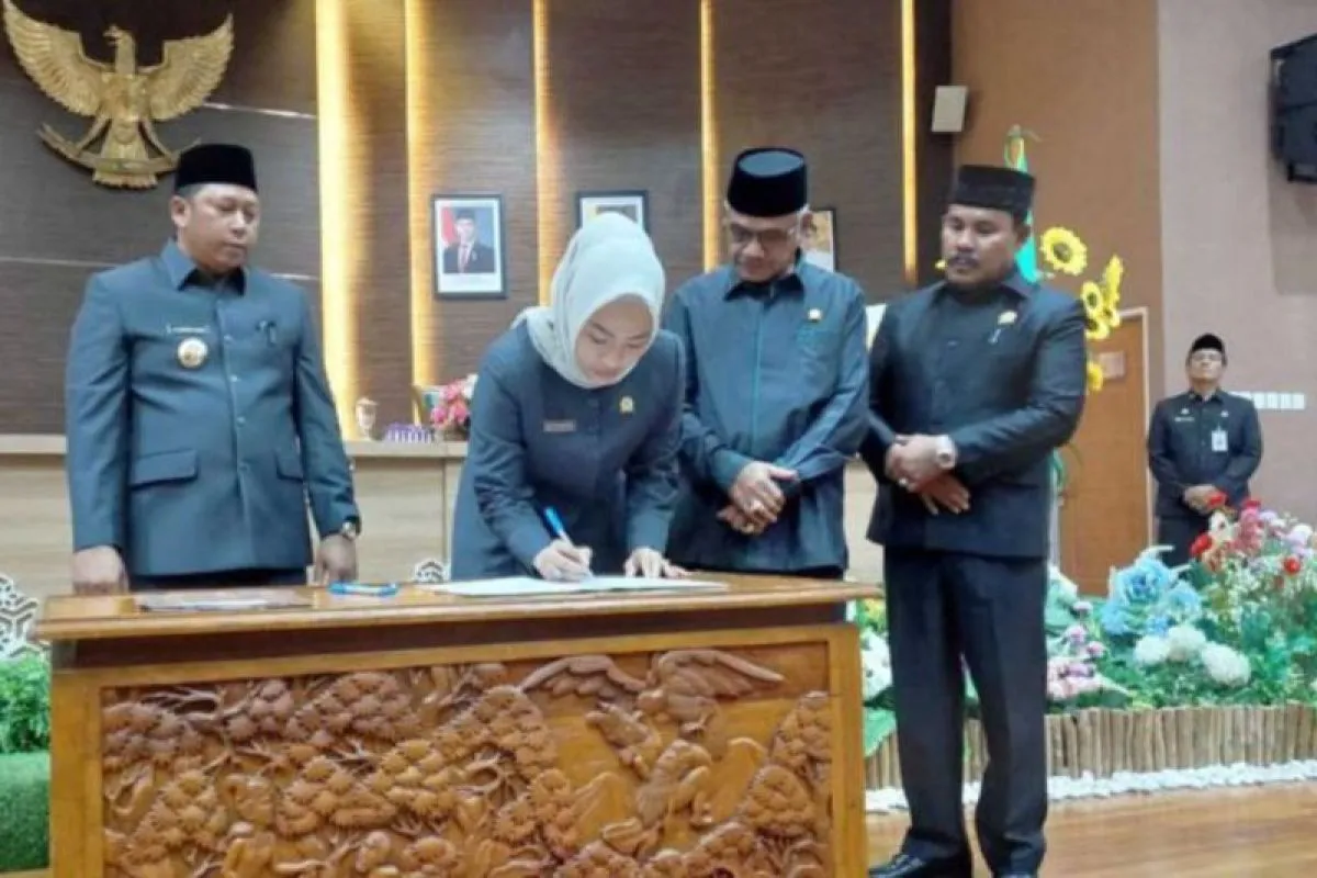 Pemkab Batola dan DPRD setempat menggelar Rapat Paripurna ke-23 Masa Sidang III Tahun Sidang 2024–2025 untuk penandatanganan Berita Acara Persetujuan Bersama terhadap Rancangan Peraturan Daerah (Raperda) tentang Perubahan Anggaran Pendapatan dan Belanja Daerah (APBD) Kabupaten Batola Tahun Anggaran 2025. (adv/sb).