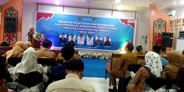 MUARA TEWEH, onlinesinarbarito.com – Pemerintah Kabupaten Barito Utara bekerja sama dengan Dinas Pemuda dan Olahraga (Dispora) Provinsi Kalimantan Tengah menggelar Pelatihan Kewirausahaan Pemuda Tingkat Kabupaten Barito Utara Tahun 2025 di Aula Dinas Budparpora, Selasa (12/8/2025).