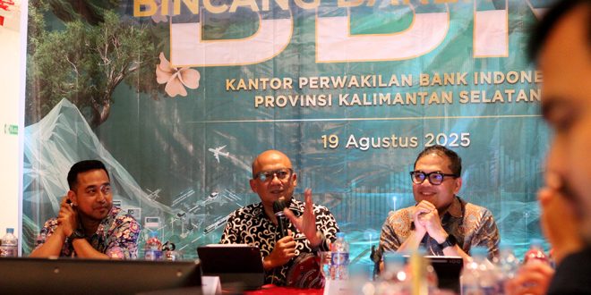 BANJARBARU, onlinesinarbarito.com – Kantor Perwakilan Bank Indonesia Provinsi Kalimantan Selatan (KPw BI Kalsel) menegaskan komitmennya untuk menjaga stabilitas sekaligus mendorong pertumbuhan ekonomi daerah. Hal itu disampaikan Kepala Perwakilan BI Kalsel, Fadjar Majardi, dalam kegiatan Bincang Bareng Media (BBM) di salah satu restoran di Banjarmasin, Selasa (19/8/2025).