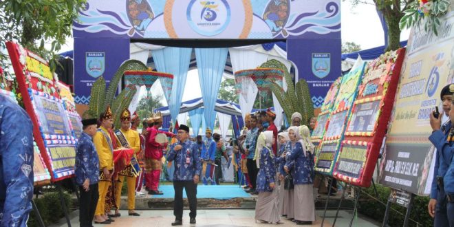 BANJARBARU, onlinesinarbarito.com – Puncak peringatan Hari Jadi ke-75 Kabupaten Banjar berlangsung meriah di Alun-alun Ratu Zalecha Martapura, Rabu (27/8/2025), Harjad tahun ini mengusung tema “Banjar Rakat, Hidup Barakat”, dihadiri oleh Gubernur Kalimantan Selatan, jajaran Forkopimda, tokoh masyarakat, dunia usaha, serta ribuan warga Banjar.