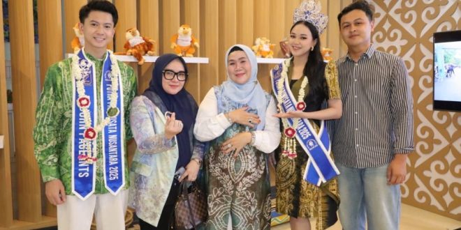BANJARBARU, onlinesinarbarito.com – Putra Putri Pariwisata Nusantara 2025 asal Kalimantan Selatan, Ridho dan Raudah, kembali ke Banua setelah berhasil mengharumkan nama daerah di ajang nasional. Kepulangan keduanya disambut hangat oleh Ketua Dharma Wanita Persatuan (DWP) Kalsel sekaligus istri Sekretaris Daerah Kalsel, Masrupah Syarifuddin, bersama jajaran pejabat Dinas Pariwisata Kalsel di Bandara Internasional Syamsudin Noor, Banjarbaru, Rabu (27/8/2025) malam.
