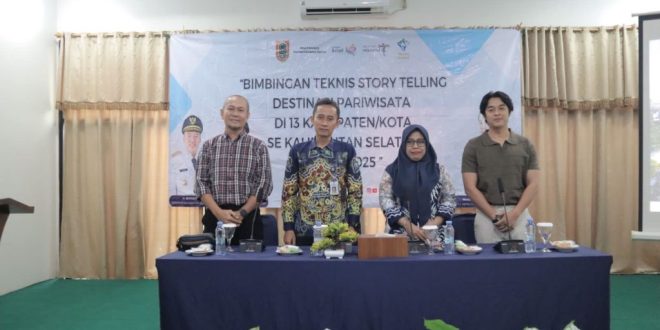 BANJARBARU, onlinesinarbarito.com – Dinas Pariwisata Provinsi Kalimantan Selatan melalui Bidang Pengembangan Destinasi menggelar Bimbingan Teknis (Bimtek) Storytelling Destinasi Pariwisata bersama Kelompok Sadar Wisata (Pokdarwis) Kabapaten Balangan dan generasi muda pegiat pariwisata, Kamis (28/8/2025).