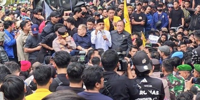 “Tujuan penuntutan itu memang untuk berpihak kepada rakyat. Kami tidak hanya menerima, tetapi juga mengawal sampai ke pusat,” tegas Supian HK di hadapan massa aksi.