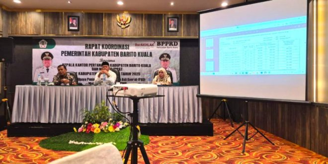 MARABAHAN, onlinesinarbarito.com – Pemerintah Kabupaten Barito Kuala (Pemkab Batola) menggelar rapat koordinasi (Rakor) bersama Kantor Pertanahan (BPN) dan para Notaris/PPAT se-Kabupaten Batola di Marabahan, Rabu (10/9/2025). Kegiatan ini bertujuan memperkuat sinergi dalam upaya meningkatkan Pendapatan Asli Daerah (PAD) melalui pajak Bea Perolehan Hak atas Tanah dan Bangunan (BPHTB).