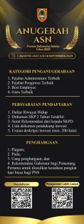 Pendaftaran Anugerah ASN 2025 sendiri dibuka hingga 30 September 2025. Sesuai arahan Gubernur Kalsel, H. Muhidin, dan Sekda Provinsi Kalsel, ASN lingkup Pemprov Kalsel diimbau untuk mendaftarkan diri agar dapat berpartisipasi dalam ajang bergengsi tersebut.