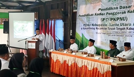 MUARA TEWEH, onlinesinarbarito.com – Ketua Pengurus Wilayah Nahdlatul Ulama (PWNU) Provinsi Kalimantan Tengah, Dr. MH Wahyudi F. Dirun, SP, MM, menyampaikan apresiasi sekaligus pesan penting dalam kegiatan kaderisasi NU yang berlangsung di Rumah Betang, Muara Teweh, Jumat (3/10/2025).