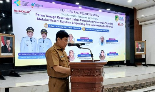 Kegiatan tersebut mengusung tema “Peran Tenaga Kesehatan dalam Percepatan Penurunan Stunting melalui Sistem Rujukan Berjenjang dan Tatalaksana Gizi Buruk”, dan dihadiri oleh Ketua TP-PKK Barito Utara, Kepala Dinas Kesehatan, Tim Percepatan Penurunan Stunting, serta tenaga kesehatan dari berbagai Puskesmas.