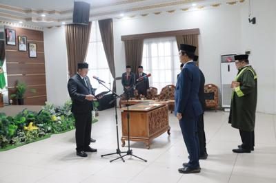 Bupati Barito Kuala, H. Bahrul Ilmi, hadir secara langsung sekaligus memimpin prosesi pelantikan serta pengambilan sumpah/janji jabatan terhadap dua pejabat yang dilantik. Pejabat yang pertama adalah Akhdiyat Sabari, yang kini resmi menjabat sebagai Kepala Dinas Pekerjaan Umum dan Penataan Ruang Kabupaten Barito Kuala, menggantikan jabatannya sebelumnya sebagai Kepala Dinas Perumahan Rakyat dan Kawasan Permukiman Kabupaten Barito Kuala.