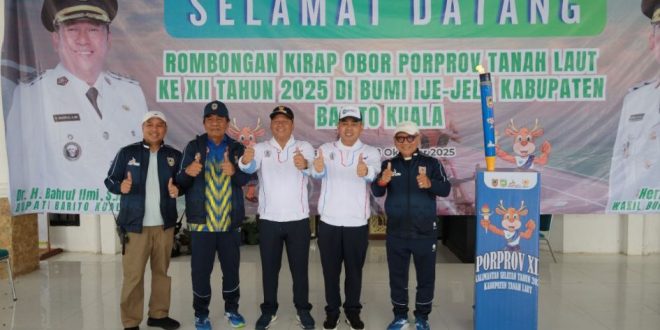 MARABAHAN, onlinesinarbarito.com – Rombongan kirab obor Pekan Olahraga Provinsi (Porprov) XII Kalimantan Selatan akhirnya tiba di Kabupaten Barito Kuala, Selasa (28/10/2025) siang.