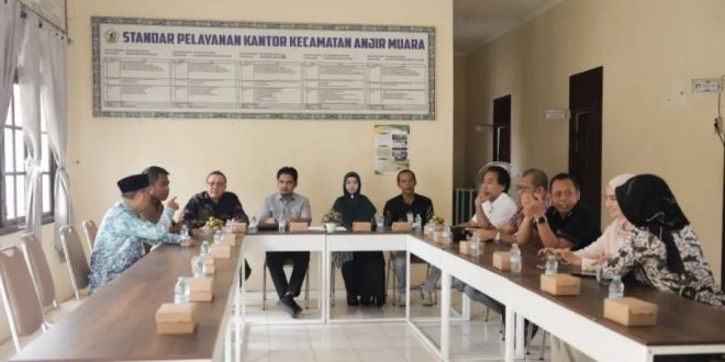 Dalam pertemuan pada Kamis (30/10/2025), Camat Anjir Muara Hj Titien Hariyati menyambut hangat kedatangan rombongan. Ia memaparkan berbagai upaya yang terus dilakukan kecamatan untuk memberikan pelayanan terbaik mulai dari administrasi kependudukan, surat-menyurat, hingga koordinasi layanan dasar.