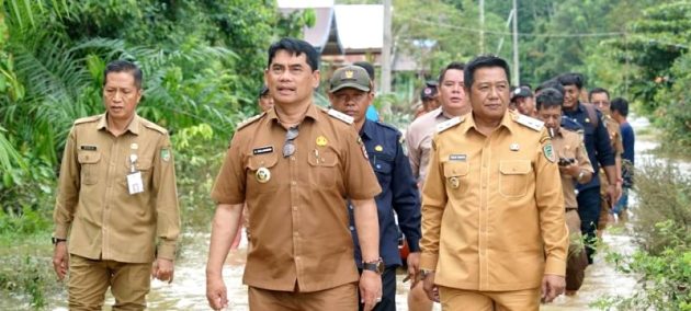 MUARA TEWEH, onlinesinarbarito.com – Bupati Barito Utara H. Shalahuddin, bersama Wakil Bupati Felix Sonadie Y. Tingan, Sekda Muhlis, serta sejumlah kepala Organisasi Perangkat Daerah (OPD) meninjau langsung lokasi banjir yang melanda kawasan KM 38 Desa Sei Rahayu I, Kecamatan Teweh Tengah.