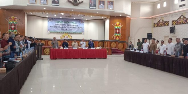 PURUK CAHU, onlinesinarbarito.com – Pemerintah Kabupaten Murung Raya menggelar Forum Koordinasi Pemerintah Daerah dan Investor Tahun 2025 di Gedung Pertemuan Umum (GPU) Tirai Tangka Balang, Puruk Cahu, Rabu (5/11/2025).