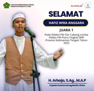 “Atas nama Kementerian Agama Kabupaten Barito Utara, kami menyampaikan selamat dan sukses kepada ananda Hafiz Wira Anggara yang telah mengharumkan nama daerah melalui prestasi gemilang ini,” kata H. Arbaja, Rabu (12/11/2025) di Muara Teweh.