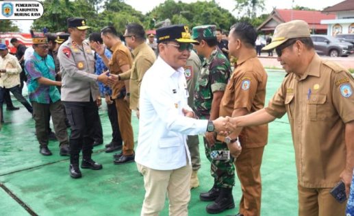 Bupati Heriyus, bersama jajaran Forkopimda dan sejumlah kepala perangkat daerah, menyambut hangat kedatangan Gubernur sesampainya di Puruk Cahu.