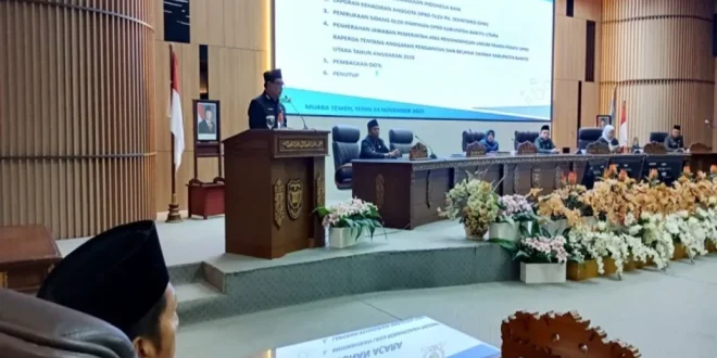MUARA TEWEH, onlinesinarbarito.com – Shalahuddin, menegaskan bahwa setiap masukan dari fraksi-fraksi DPRD merupakan napas penting dalam proses penyempurnaan kebijakan fiskal dan arah pembangunan daerah. Hal itu ia sampaikan saat memberikan jawaban atas pemandangan umum fraksi-fraksi terhadap Rancangan APBD Tahun Anggaran 2026 dalam rapat paripurna yang dipimpin Ketua DPRD Mery Rukaini, Senin (24/11/2025).