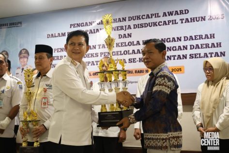 Penganugerahan diserahkan secara resmi oleh Kepala BRIDA sekaligus Plt. Kepala Disdukcapil Provinsi Kalsel, Thaufik Hidayat, yang mewakili Gubernur Kalsel, H. Muhidin.