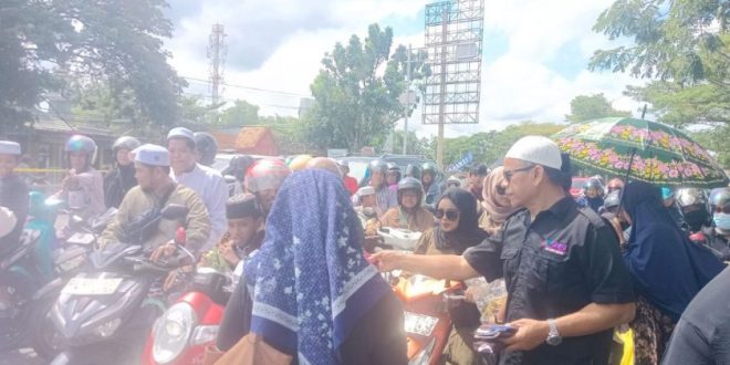 MARTAPURA, onlinesinarbarito.com – SMSI Kalsel turut menyambut kegiatan 5 Rajab atau haul Guru Sekumpul dengan membagikan bingkisan sovenir kepada jemaah yang melintas di Jalan A Yani KM 15, Gambut, Minggu (28/12/2025).