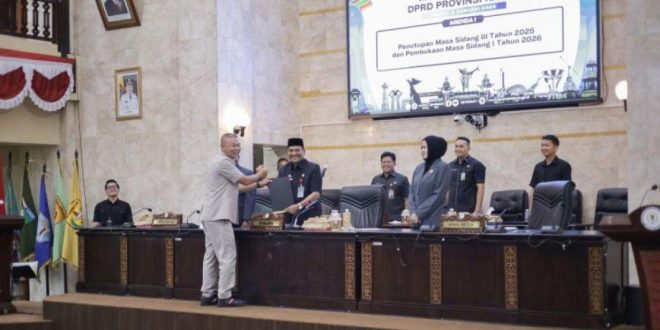 Penyerahan hasil reses oleh anggota Fraksi PKS Taufik Rahman kepada Ketua DPRD Kalsel H Supian HK berlangsung pada rapat paripurna penutupan masa sidang III 2025 dan masa sidang I (Januari – April) 2026 di Banjarmasin,. Jumat.
