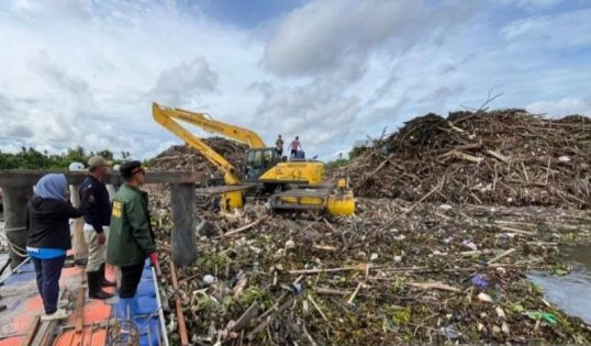 Wali Kota Banjarmasin, H Muhammad Yamin HR, turun langsung memantau kegiatan pembersihan di kawasan Sungai Gampa, Banjarmasin Utara, yang menjadi titik penumpukan material kiriman tersebut.