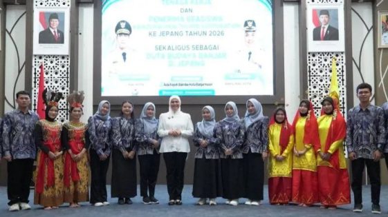 BANJARMASIN, onlinesinarbarito.com – Pemerintah Kota Banjarmasin melepas 15 delegasi tenaga kerja sekaligus penerima beasiswa untuk bekerja di Jepang melalui program kerja sama dengan Kaikoukai Healthcare Corporation. Pelepasan delegasi angkatan keempat tersebut berlangsung di Aula Balai Kota Banjarmasin, Rabu (18/2/2026).