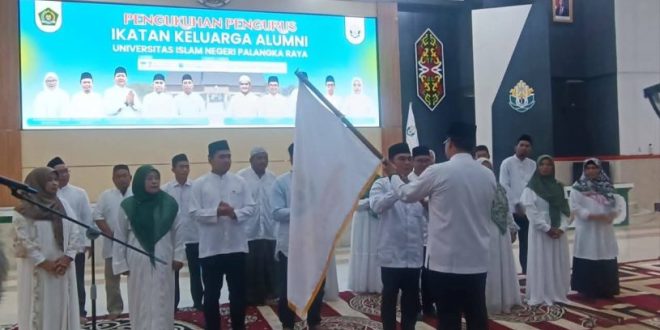 PALANGKA RAYA, onlinesinarbarito.com – Energi kebersamaan para alumni terasa kuat di Aula Utama Rektorat Universitas Islam Negeri Palangka Raya, Sabtu (7/3/2026). Dalam suasana hangat dan penuh semangat pengabdian, Rahmanto Muhidin, S.H.I., M.H, resmi dikukuhkan sebagai Ketua Ikatan Keluarga Alumni (IKA) UIN Palangka Raya.