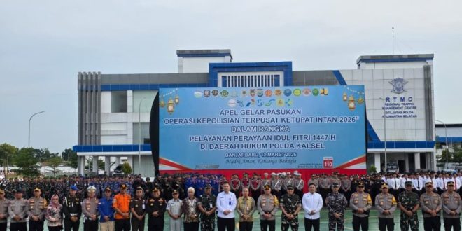BANJARBARU, onlinesinarbarito.com — Menjelang Hari Raya Idulfitri 1447 Hijriah, Kepolisian Daerah Kalimantan Selatan menggelar apel Operasi Ketupat Intan 2026 di Banjarbaru, Kamis (12/03/2026) sore, guna memastikan kelancaran dan keamanan arus mudik.