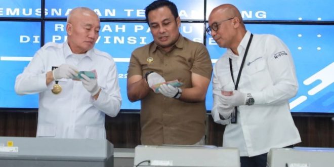 Sebanyak 463 lembar uang palsu pecahan Rp50 ribu dan Rp100 ribu hasil temuan tahun 2024 dan 2025 dimusnahkan menggunakan mesin penghancur sebagai bentuk komitmen pemberantasan kejahatan pemalsuan uang.