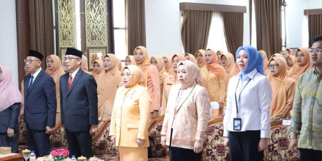 Penasihat DWP selaku Ketua TP PKK, Ny. Hj. Noorhayati Bahrul Ilmi, dalam sambutannya menegaskan bahwa rapat kerja merupakan momentum untuk mengevaluasi capaian dan merancang langkah strategis ke depan. Beliau menekankan pentingnya peran DWP dalam mendukung tugas suami sebagai ASN sekaligus menjadi motor penggerak kesejahteraan keluarga.