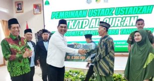 MUARA TEWEH, onlinesinarbarito.com – Bupati Barito Utara, H. Shalahuddin, menegaskan pentingnya peran ustadz dan ustadzah sebagai garda terdepan dalam membentuk karakter dan akhlak generasi muda yang cinta Al-Qur’an. Hal tersebut disampaikannya saat membuka kegiatan Pelatihan Ustadz dan Ustadzah TKA/TPA/TQA sekaligus penyerahan insentif tahun 2025, yang berlangsung di Aula Bappedarida Muara …