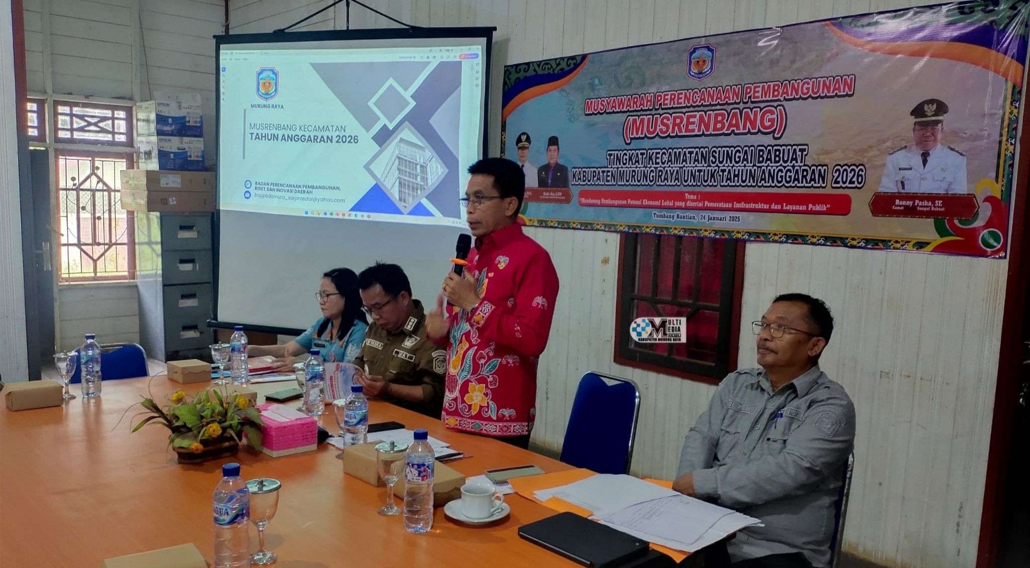 PURUK CAHU, onlinesinarbarito.com – Pemerintah Kabupaten Murung Raya menggelar Musyawarah Perencanaan Pembangunan (Musrenbang) diKecamatan Sungai Babuat untuk tahun anggaran 2026. Kegiatan Musrenbang dilaksanakan dikantor Kecamatan Sungai Babuat, dihadiri Pj Bupati Murung Raya (Mura), Dr. Hermon, didampingi oleh Kepala Dinas Pekerjaan Umum dan Penataan Ruang (PUPR) Kab.Murung Raya, Paulus Manginte, serta …