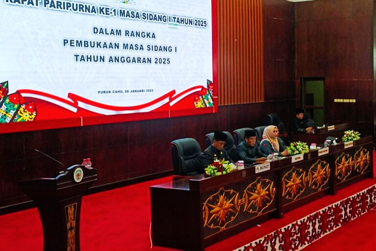 PURUK CAHU, onlinesinarbarito.com – Pj Bupati Kabupaten Murung Raya, Kalimantan Tengah, Dr. Hermon, M.SI, menghadiri Rapat Paripurna ke 1 Masa sidang 1 Tahun 2025 dalam rangka pembukaan Masa sidang 1 tahun anggaran 2025, Senin (6/1/2025). Rapat paripurna ini dipimpin langsung oleh Ketua DPRD Kabupaten Murung Raya, Rumiadi, S.E.,S.H.M.H. Dalam sambutanya, …