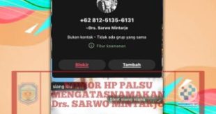 PURUK CAHU, onlinesinarbarito.com – Masyarakat Kabupaten Murung Raya dihebohkan dengan beredarnya akun WhatsApp palsu yang mengatasnamakan pejabat daerah. Kali ini, akun tersebut mencatut nama Pelaksana Tugas (Plt) Sekretaris Daerah (Sekda) Murung Raya, Sarwo Mintarjo, dan telah tersebar di sejumlah grup WhatsApp.Menanggapi hal tersebut, Plt. Sekda Murung Raya, Sarwo Mintarjo, dengan …
