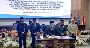 MUARA TEWEH, onlinesinarbarito.com – Penjabat (Pj) Bupati Barito Utara Indra Gunawan menyampaikan pidato penutup sekaligus pendapat akhir pemerintah daerah atas pembahasan Rancangan Peraturan Daerah tentang Perubahan APBD Kabupaten Barito Utara Tahun Anggaran 2025 dalam Rapat Paripurna IV Masa Sidang I di ruang sidang DPRD, Jumat (26/9/2025). Pj Bupati Indra Gunawan …