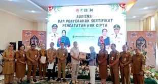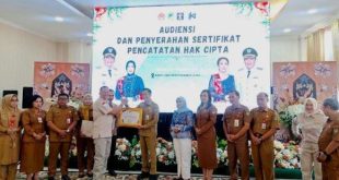 MUARA TEWEH, onlinesinarbarito.com – Ketua Dekranasda Kabupaten Barito Utara Hj. Maya Savitri Shalahuddin menyampaikan bahwa sertifikat pencatatan hak cipta dan desain industri merupakan aset penting bagi pelaku usaha, khususnya industri batik daerah, dalam menghadapi era ekonomi kreatif. Pernyataan tersebut disampaikan pada acara Audiensi dan Penyerahan Sertifikat Hak Cipta dan Desain …